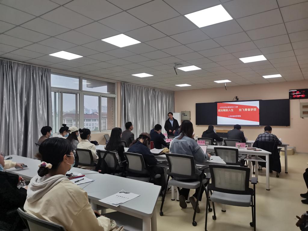 4月19日,以“与梦想同行 创精彩人生”为主题的人文社会科学学院职业生涯规划大赛在人文楼608室举行。比赛由人文社会科学学院党委副书记吴永红主持。此次比赛也是校第六届大学生生涯规划活动月重要活动之一。