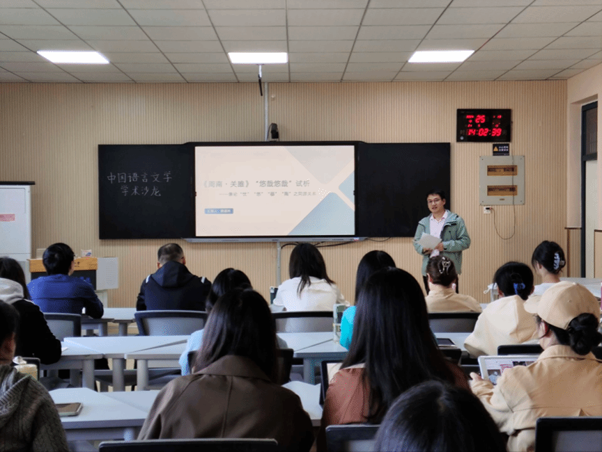 本网讯 为厚植文化自信,推动学科发展,人文社会科学学院中文系于10月25日下午举办第二期中国语言文学学科学术沙龙。本期沙龙由中文艺术教工党支部副书记姚道林博士主讲,中国语言文学2024级硕士研究生张睦仪担任与谈人。人文社会科学学院院长、中国语言文学学科负责人方国武,中文系主任、中文艺术教工党支部书记张艺,以及中文系师生参加了活动。