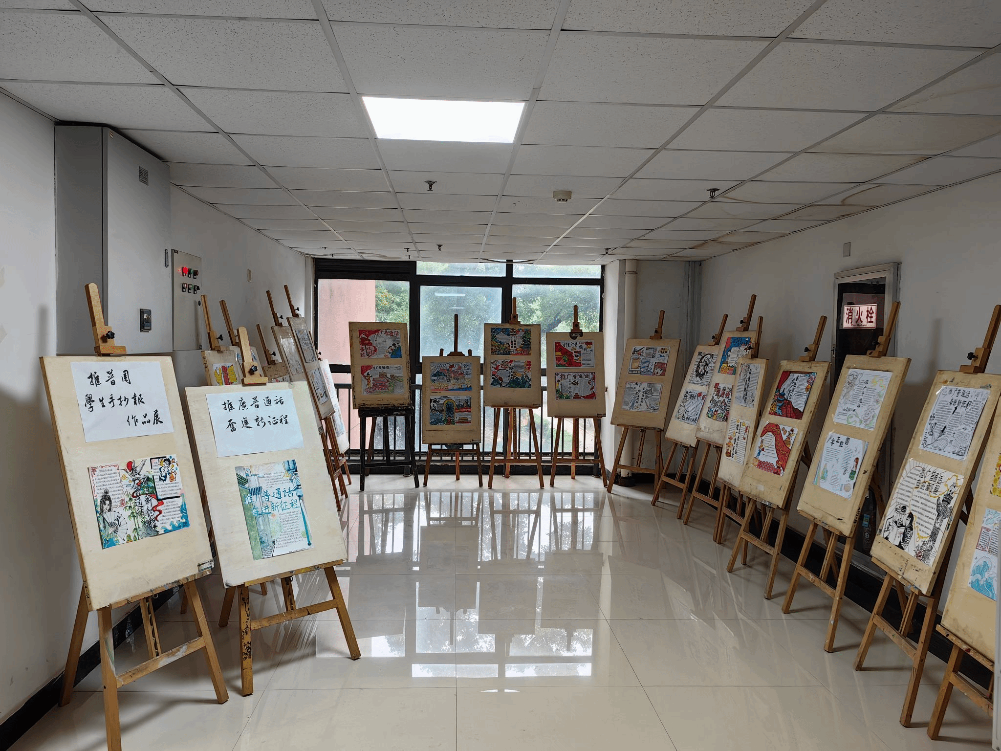 描中国故事,绘青春华章。汉语言文学专业学生党支部在第26届全国推广普通话宣传周期间,依托学校普通话测试站,协助校语言文字工作委员办公室成功举办了首届普通话科普手抄报比赛、第十七届“爱农杯”普通话大赛。支部党员精心组织,积极参与,50幅优秀作品展览于校普通话测试站,内容充实、形式多样,一幅幅制作精美的手抄报展现出支部党员“说好普通话,写好规范字”的专业素养,描绘出独特的中国故事和对祖国的无限热爱。