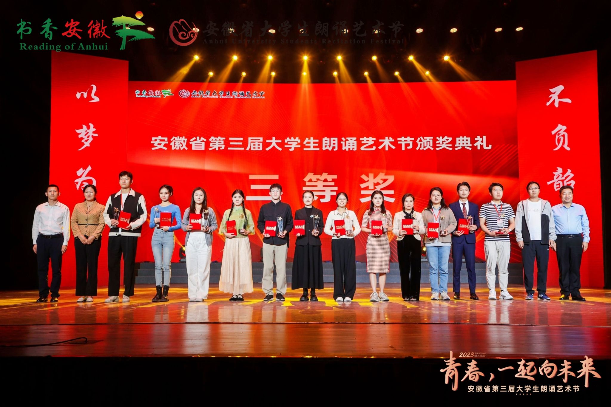 本网讯 10月17日,由中共安徽省委宣传部、中共安徽省委教育工委主办,安徽艺术学院、安徽省朗诵艺术学会承办的“青春,一起向未来”安徽省第三届大学生朗诵艺术节在安徽艺术学院圆满落幕,我院师生在本次艺术节荣获三等奖1项,学校获评优秀组织奖。