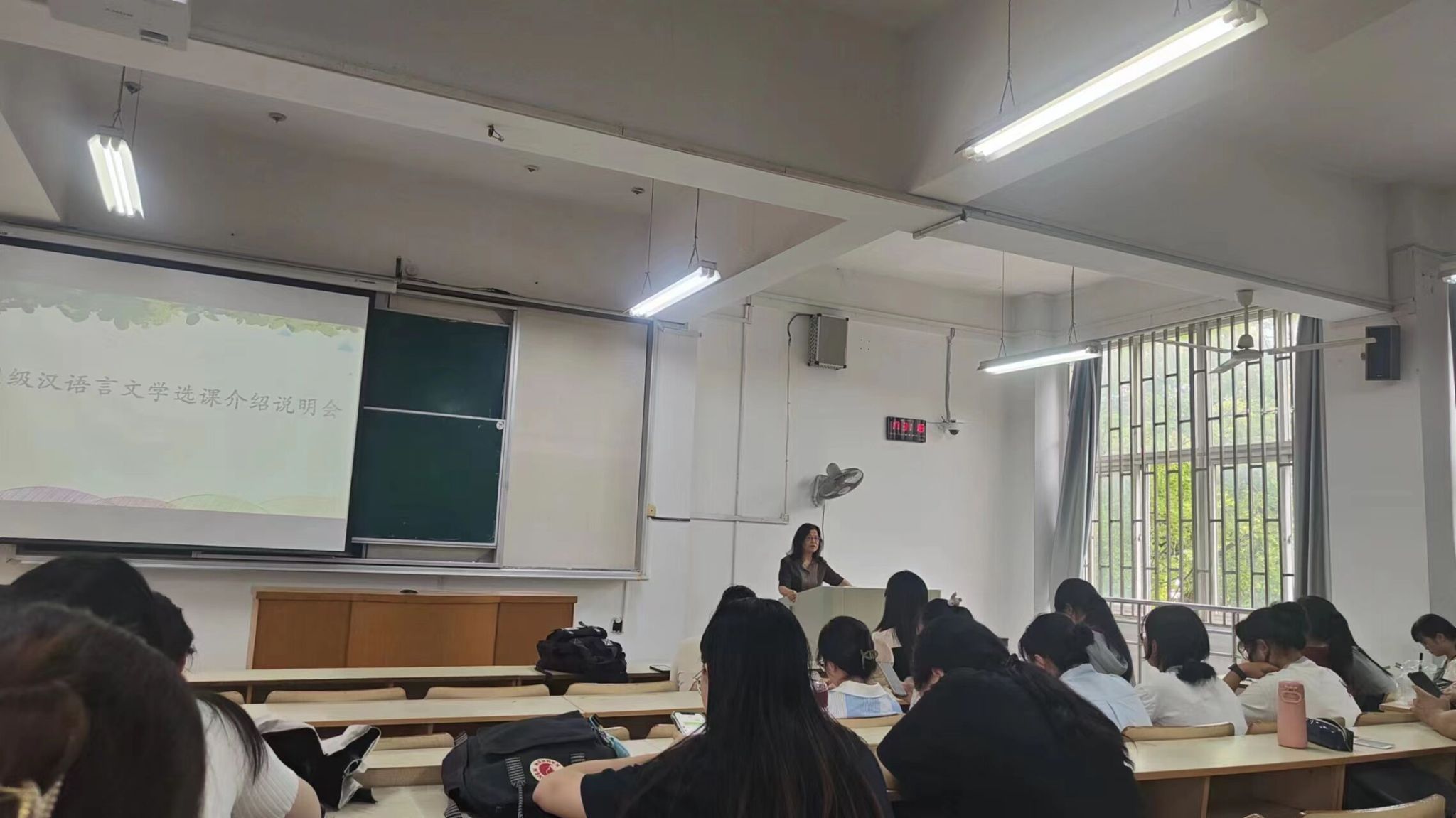 本网讯 6月30日下午,人文社会科学学院中文系在勤学楼229教室召开选课介绍说明会,本次介绍会由中文系教授沈琳、副教授张艺、司念老师主讲,专业辅导员张智勇以及21汉语言文学专业全体同学参加本次会议。会议由系主任张艺主持。