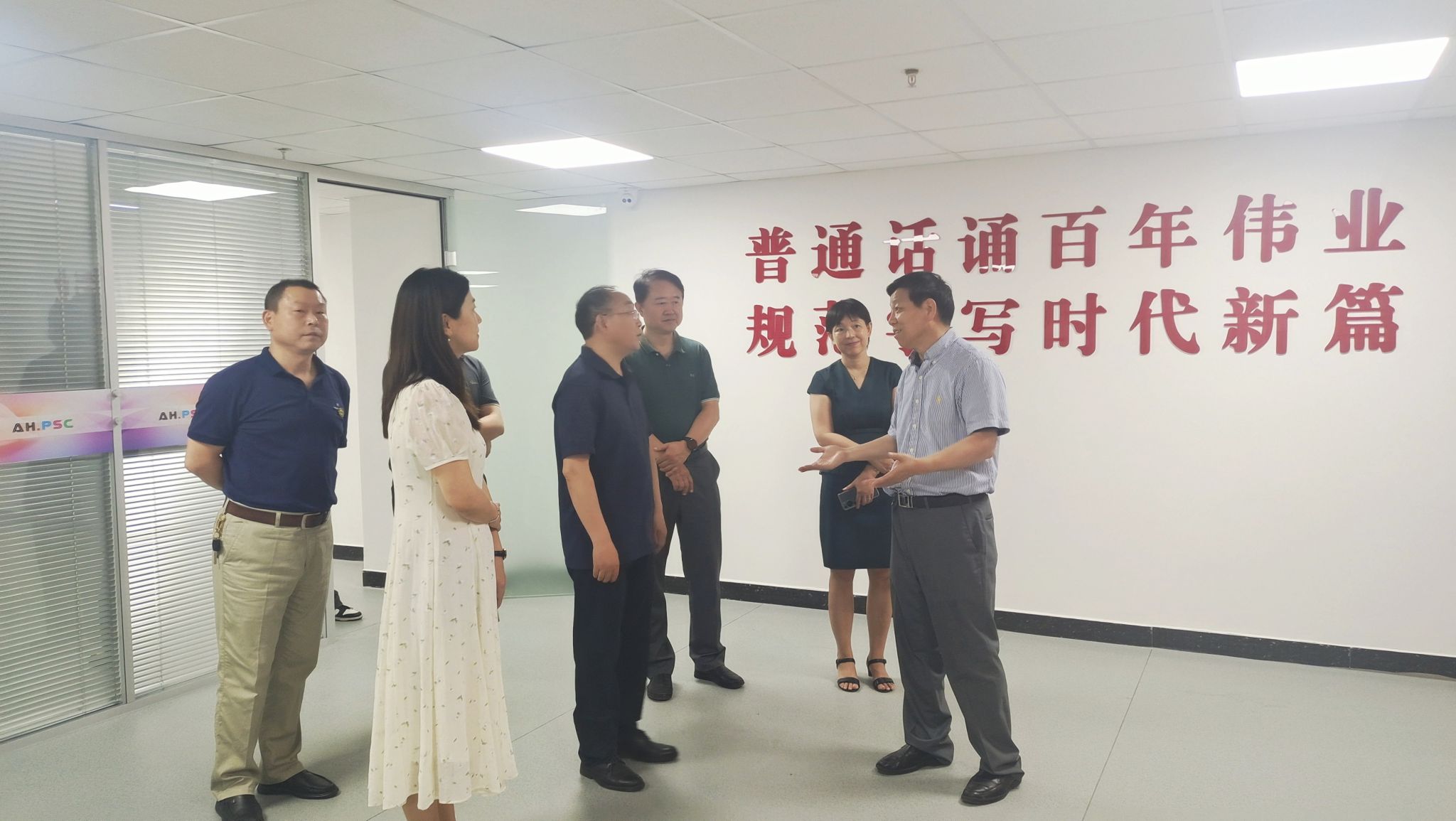 裴树东对单明一行来校指导表示欢迎,对省语委长期以来关心支持学校语言文字工作表示感谢。他指出,学校本着“以人为本”的办学理念,切实践行我为师生办实事,在省语委的指导和帮助下,高标准新建了普通话测试站。要严格按照省语委工作要求,高水平管理、高质量服务、高效率运行,将测试站打造成师生语言文字交流和发展的重要平台,营造“说普通话、写规范字、用文明语、做文明人”的浓郁氛围,更好地推进学校语言文字规范化建设。要积极参与服务乡村推普工作,在广大农村地区开展国家通用语言文字宣传和培训活动,普及国家通用语言文字,传播优秀乡村文化,推普助力乡村振兴。