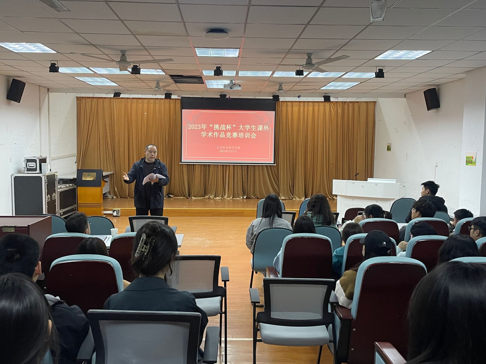 本网讯 3月7日晚,人文社会科学学院在人文楼602报告厅举办2023年“挑战杯”大学生课外学术科技作品竞赛培训动员会。邀请工学院副院长张璐为参赛师生及部分大一新生开展创新创业教育培训。培训会由副院长单国雷主持。