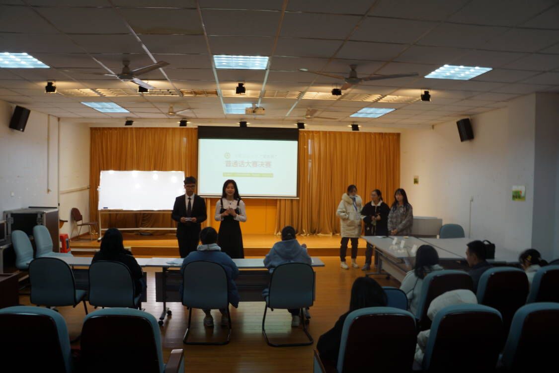 12月19日下午,决赛在人文楼602教室举行。从初赛中脱颖而出的16名优胜者进入决赛环节,来自人文院的五位评委参与评选。决赛赛事开始,主持人宣读了开场词并介绍了比赛规则,选手通过自我介绍、现场进行短文朗读、即兴观点评述等环节,以面试的形式充分展现了普通话应用能力。经过90分钟的激烈角逐,选手们完成展示,评委们对选手的表现进行了精彩的点评。最后,主持人宣布本次大赛结果,来自人文社会科学学院的汪雨萱同学荣获一等奖,经济管理学院的葛清清同学和人文社会科学学院的严晓晓同学荣获二等奖,外国语学院的李君逸、轻纺工程与艺术学院的陈国丽以及农学院的白伊涵三名同学荣获三等奖。比赛结束后,所有活动参与者进行了集体合影留念。