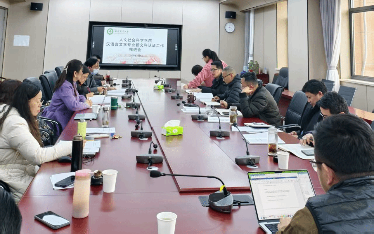 本网讯 3月5日,人文社科学院召开第五次新文科认证工作推进会。校教务处副处长宋贺、院党委书记王冬平、院长方国武、副院长江晓华及中文系全体教师参加会议。会议由副院长滕瀚主持。