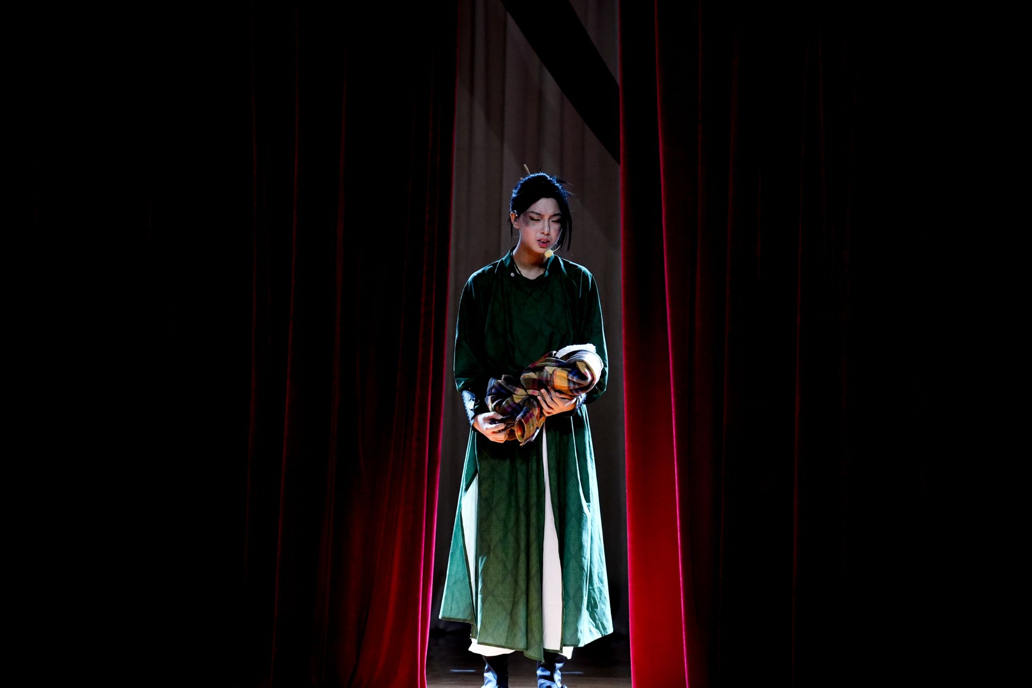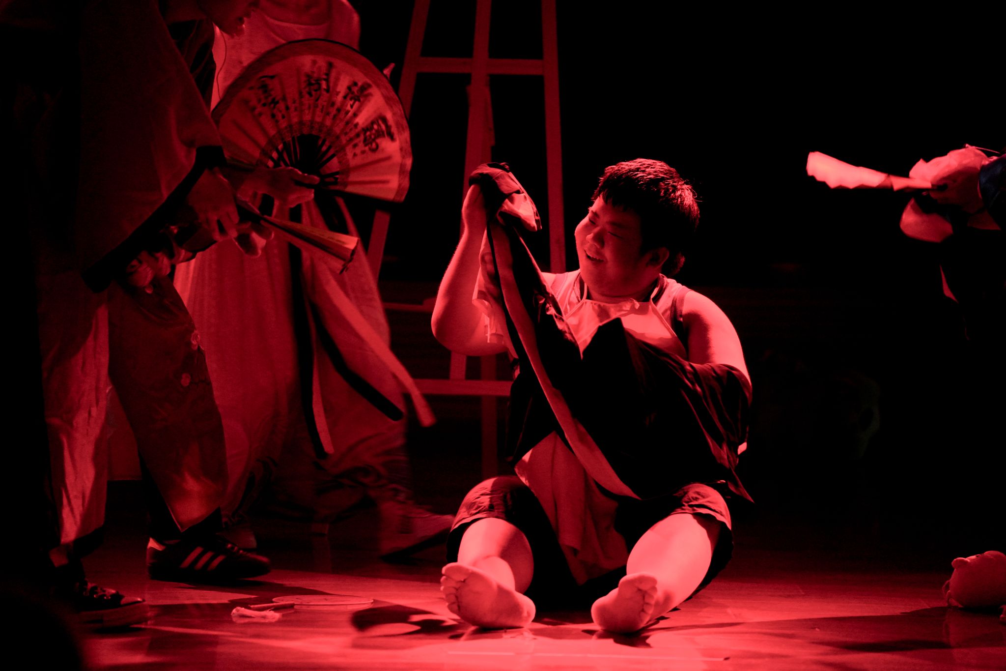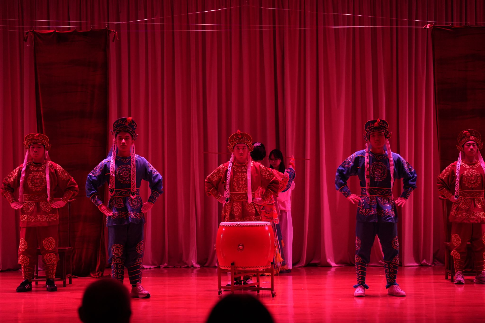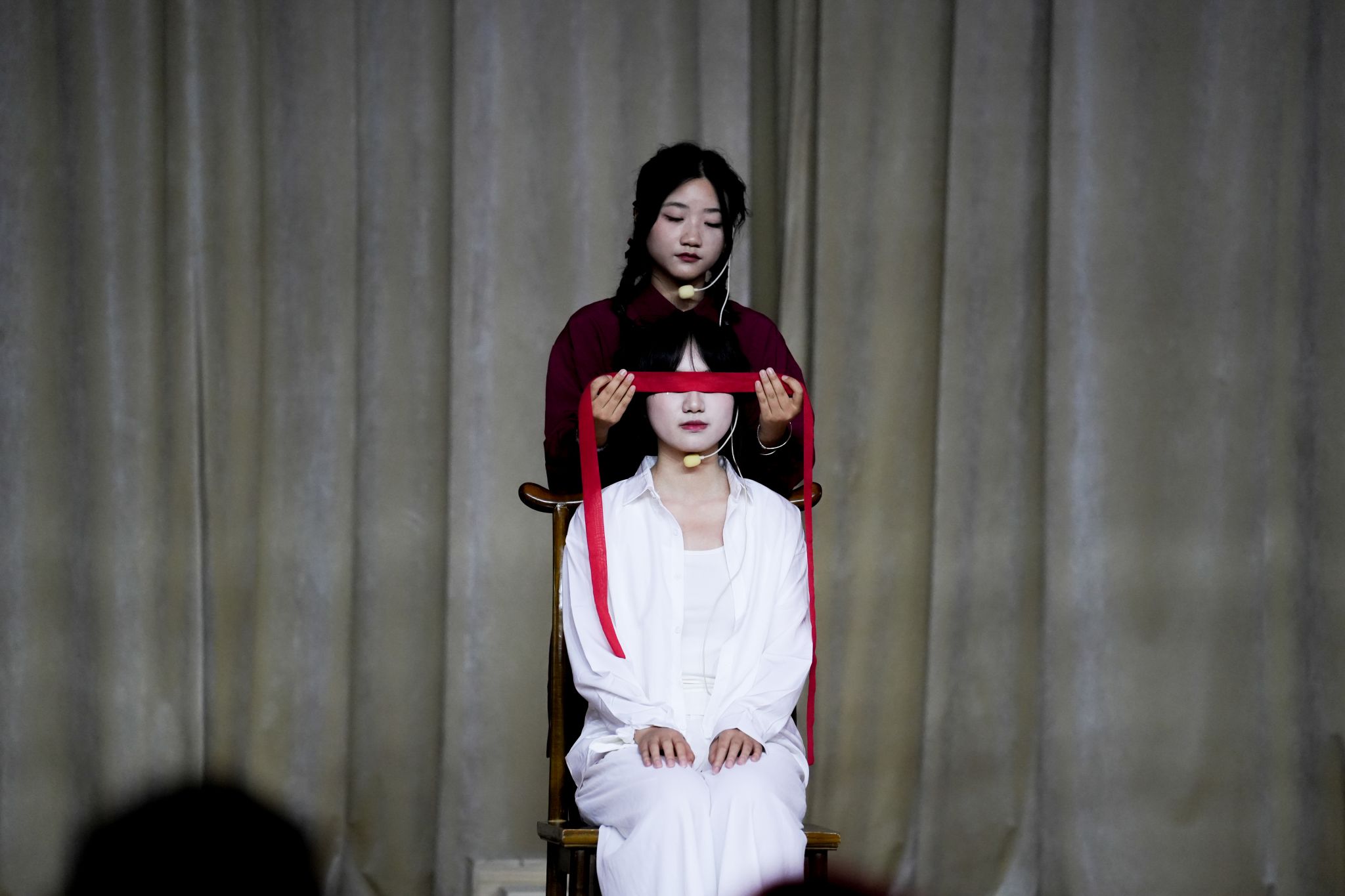 本次课程汇报演出所改编的作品均为中国古典作品,体现了中华优秀传统文化对育人实践的浸润。如,《复仇》以《赵氏孤儿》为蓝本,探寻正义的内涵;《化茧》《如果这就是春天》《是青色,不是青蛇》,分别借助《梁山伯与祝英台》《牡丹亭》《雷峰塔》等经典作品,探求正确的爱情观;《在门后》《热闹学堂》脱胎于《儒林外史》,反思古代科举制度对人的异化;《补天》将戏曲元素融入其中,关注文学作品中的女性力量;《第八个节目》改编自《红楼梦》以沉浸式戏剧的形式,呼应《红楼梦》“真真假假”的叙事精髓。整场演出,利用“布”延展情绪,利用“鼓”直击心灵,在解构与重构间赋予古典文本当代呼吸。据悉,在王雪松、张丹、刘玉梅老师的指导下,同学们从4月份便开始编创剧本、组织排练,进行了多轮彩排,最终得以将作品呈现舞台。